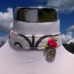 Kropfband in Weiß/Schwarz mit seitlichen pinkfarbenen Rosen ...